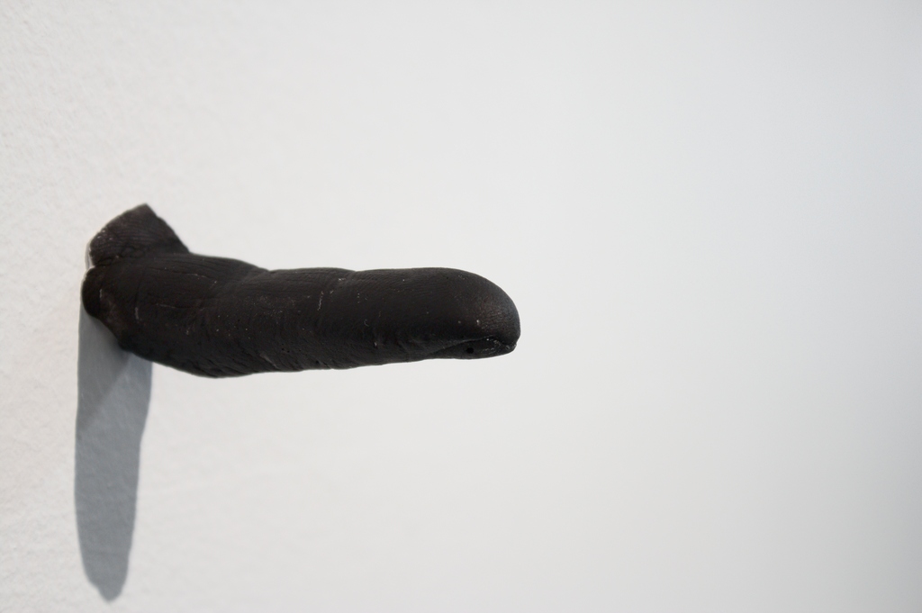 Yeso y pintura acrílica. Montado a la altura de la ingle.